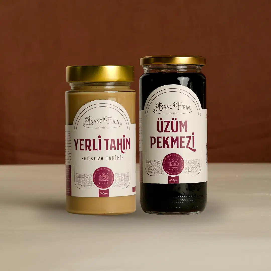 Kahvaltı sofralarının vazgeçilmez ikilisi şimdi özel paket halinde! Taş değirmenlerde üretilen yerli tahin ve doğal yöntemlerle hazırlanan kara üzüm pekmezi, bir araya gelerek eşsiz bir lezzet sunar.