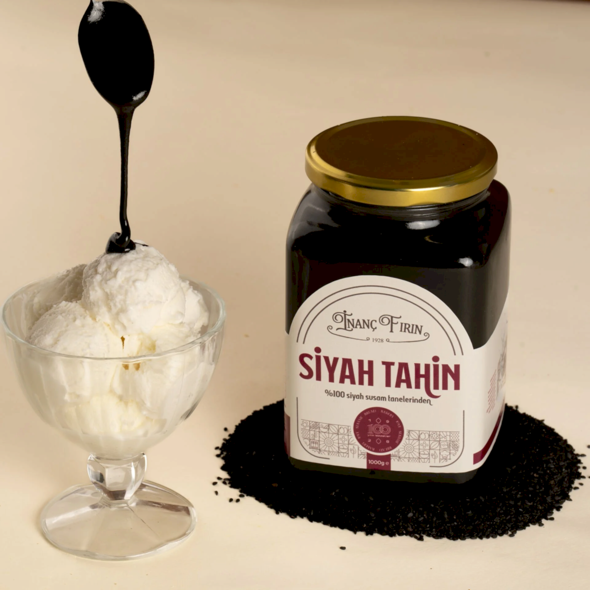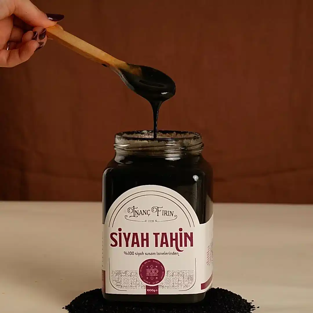 Siyah tahin, özenle seçilen ithal siyah susamların kabuklarıyla birlikte taş değirmenlerde öğütülmesiyle üretilir. Kabuklarıyla işlenmesi, tahine yoğun bir aroma ve kendine özgü bir doku kazandırır. Geleneksel öğütme yöntemi sayesinde saf lezzetini korur.